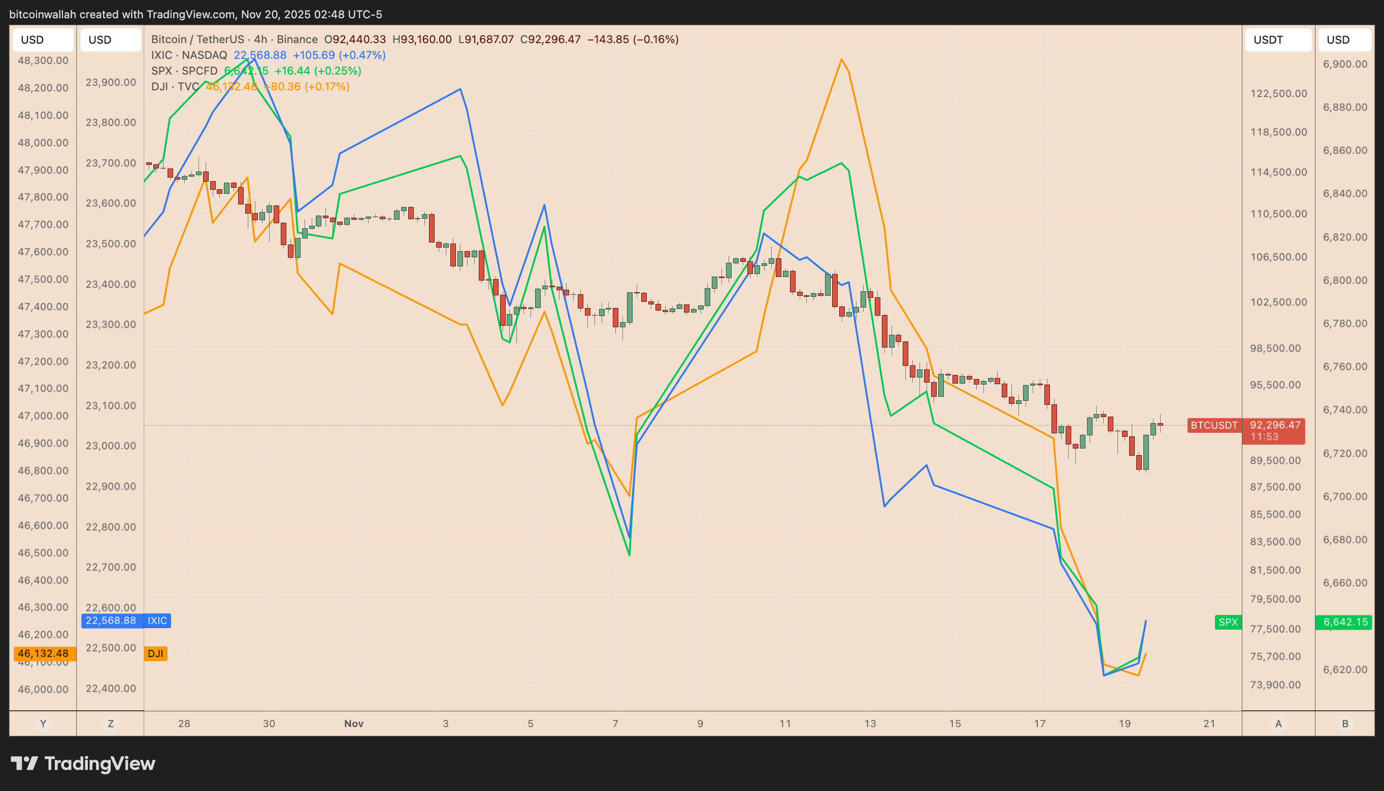 Bitcoin (BTC) witnessed a fluctuation following Nvidia Corp’s optimistic revenue forecast, which initially alleviated fears surrounding an AI bubble; however, this was short-lived as the Dow Jones reversed its gains, leading to a market pullback.