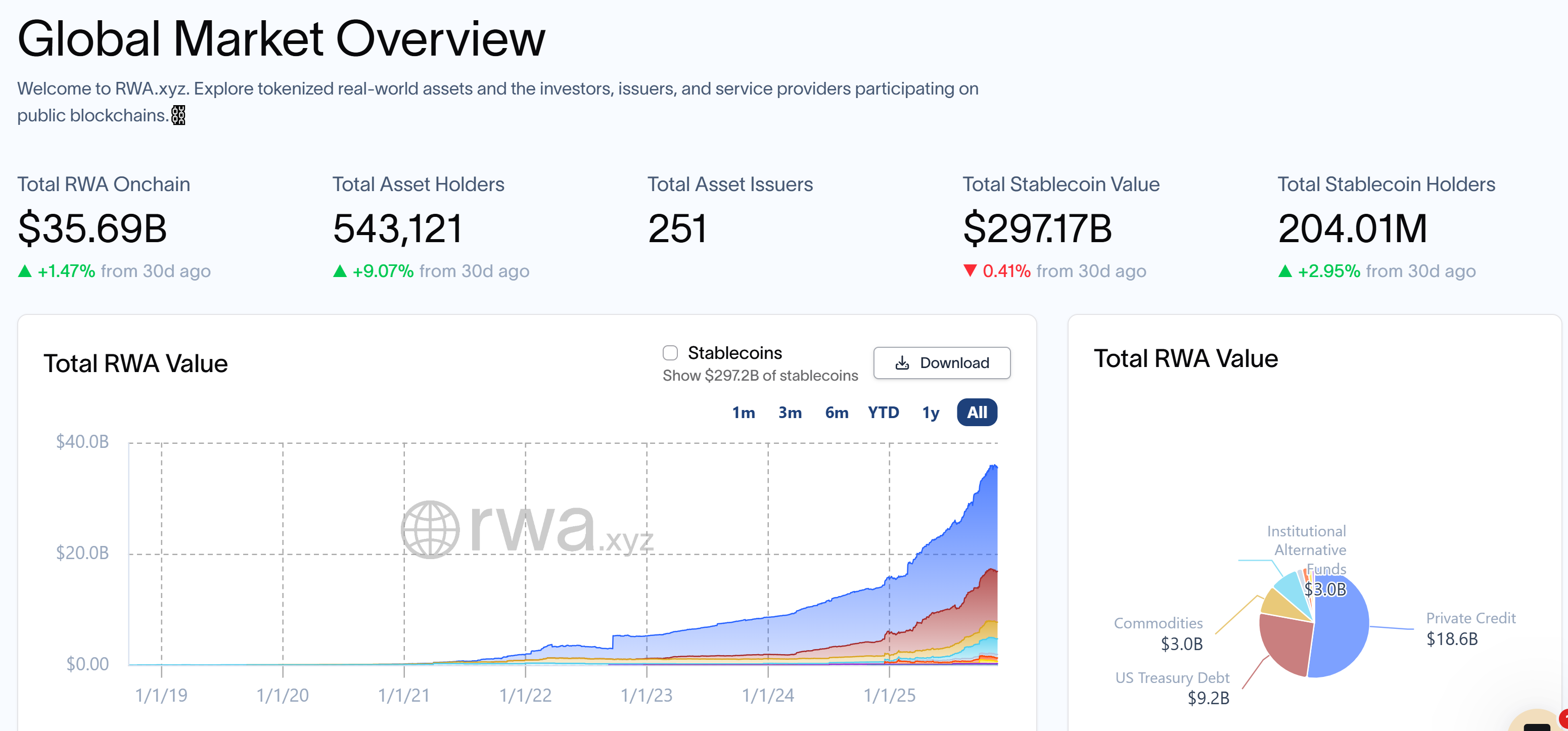 The market for tokenized assets has expanded from $5 billion to over $35.6 billion since the start of 2023, according to RWA.xyz.