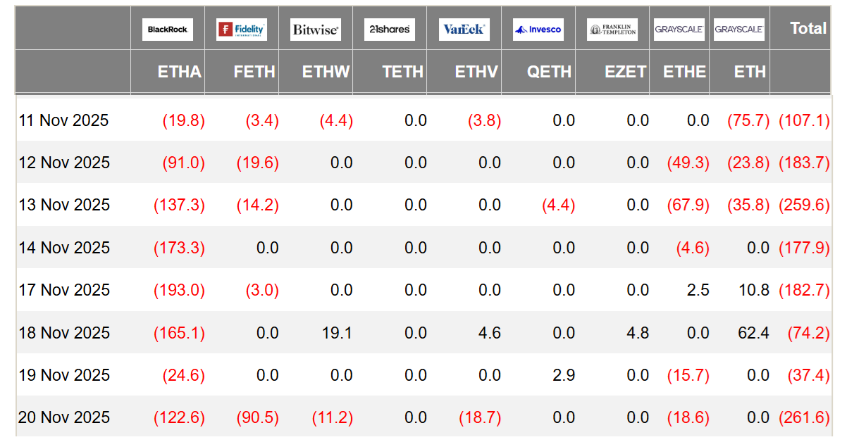 Spot Ethereum ETFs daily net outflows, USD. Source: Farside Investors