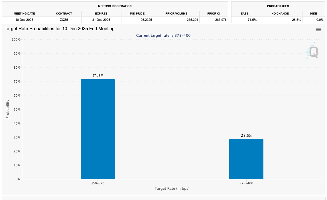 Fed target rate probabilities for December FOMC meeting (screenshot). Source: CME Group