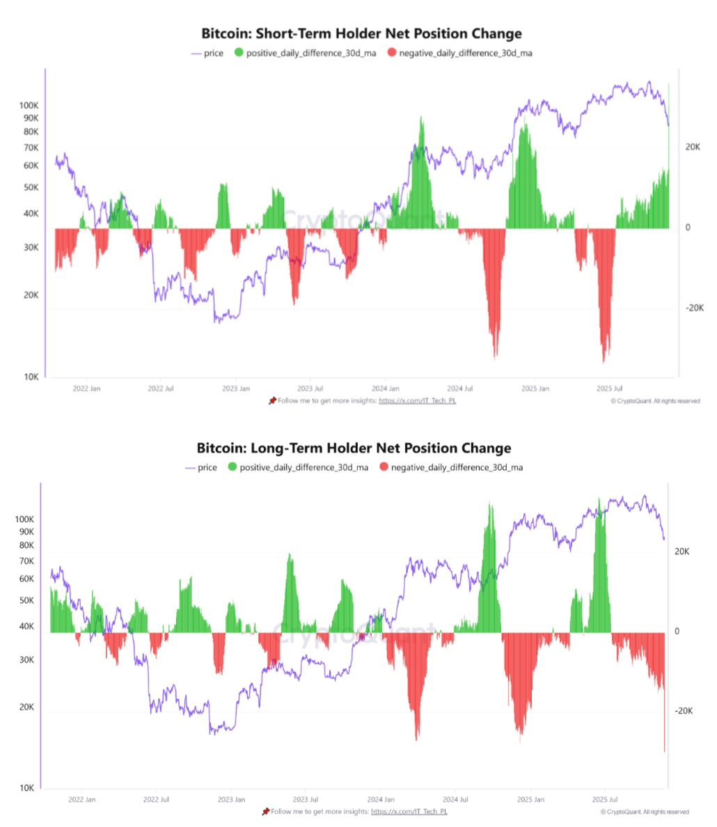 Bitcoin LTH/STH 30-day net position change (screenshot). Source: CryptoQuant