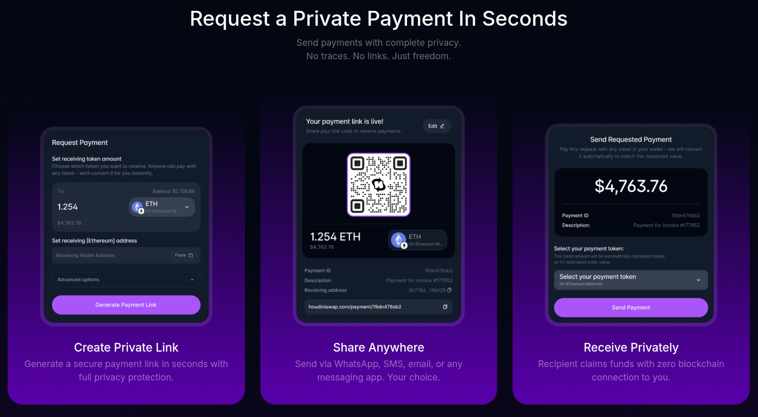 Houdini Swap has introduced Houdini Pay, a payment service designed specifically for freelancers that ensures privacy by breaking the onchain links between senders and recipients. Users can now accept payments in their chosen cryptocurrency without exposing their onchain addresses.
