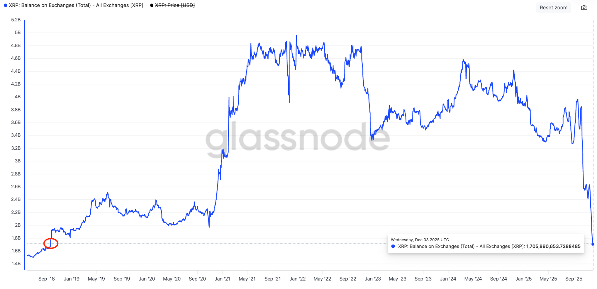 XRP reserve on exchanges. Source: Glassnode