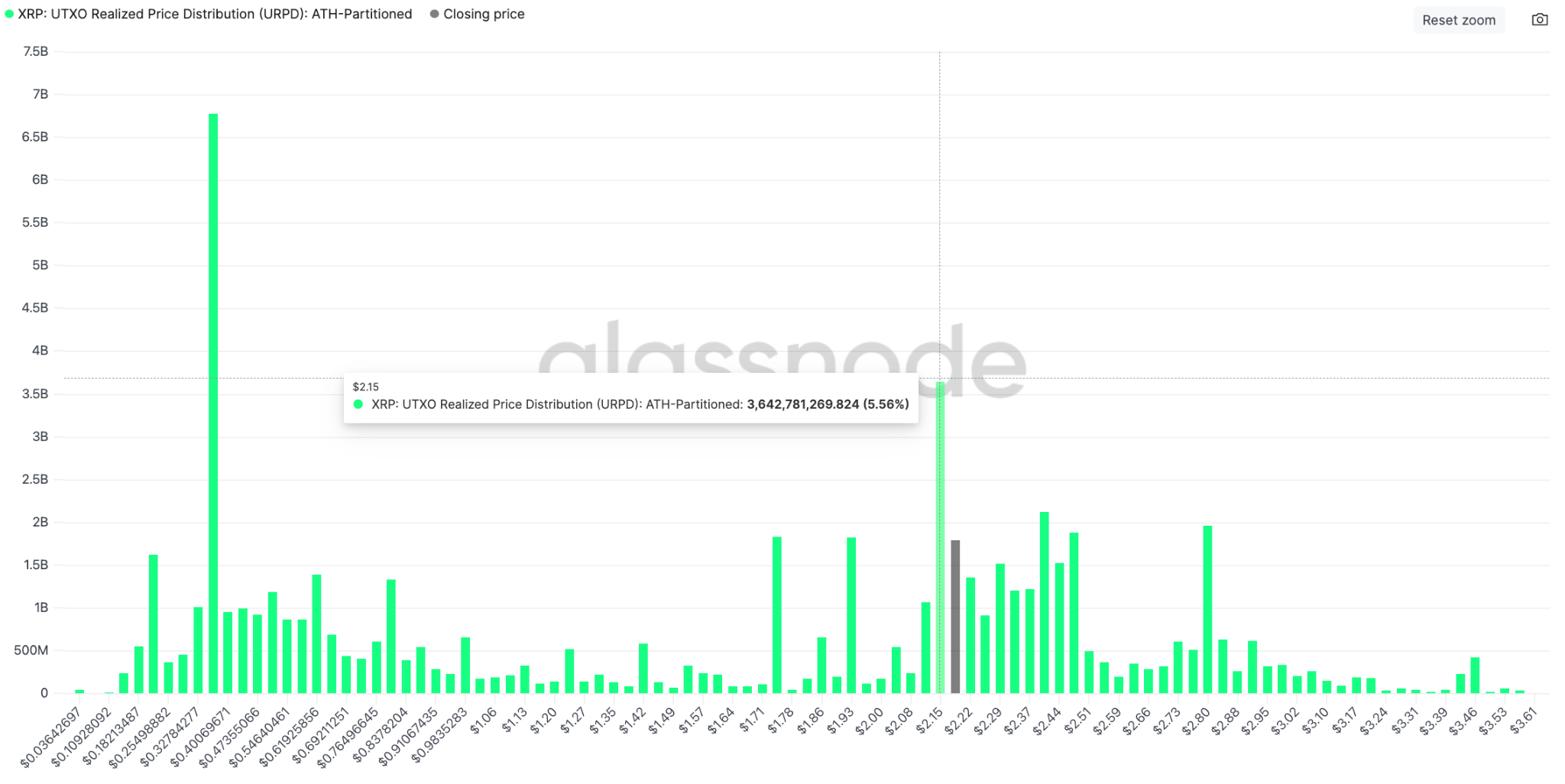 Glassnode’s UTXO realized price distribution analysis indicates that $2.15 is a critical support point where 3.6 billion tokens were purchased by investors.