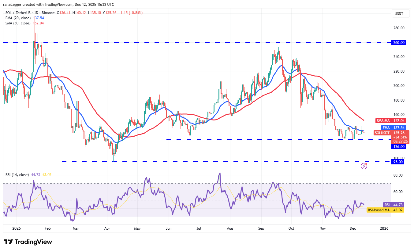 For a potential trend reversal, bulls must elevate the Solana price above the 50-day SMA ($152). If successful, the SOL/USDT pair could climb to $172 and subsequently to $190. Alternatively, a drop and closure beneath $126 would signal a resumption of the downward movement, potentially plummeting to $100 and then to robust support at $95.