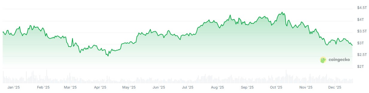 He mentioned that various encouraging factors, like increasing liquidity and support from the pro-crypto US government, should have positively impacted the crypto market. Yet, the total market cap is expected to finish the year over 32% below its peak of $4.4 trillion from early October.