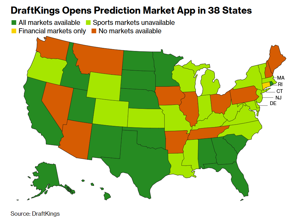 As reported by Bloomberg, the company unveiled its DraftKings Predictions app on Friday, enabling users to speculate on various sports and financial outcomes. Initially, the app is accessible in 38 states, allowing sports-related trades in 17 of them.