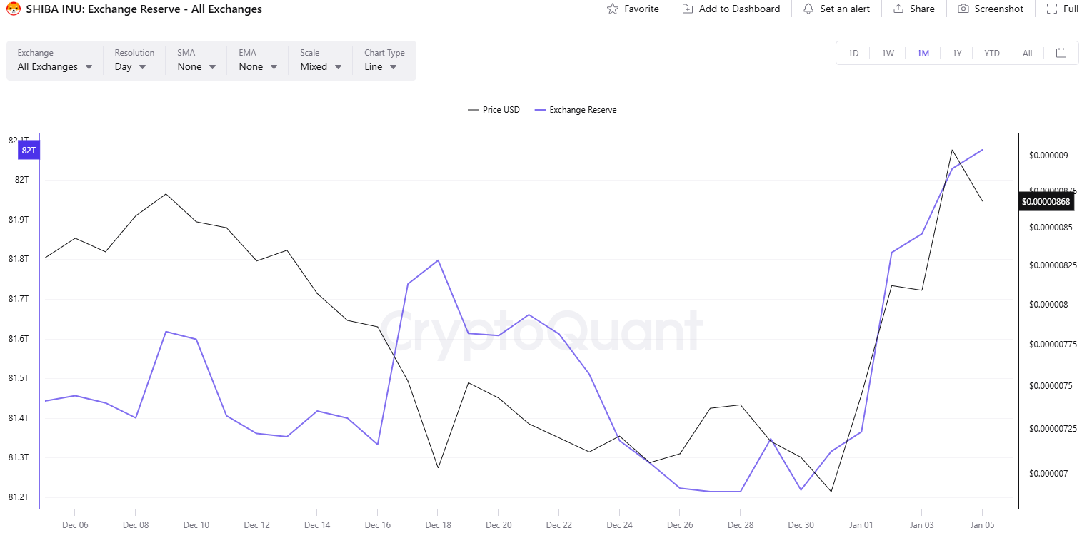 Despite recent gains, some indicators show that SHIB is not completely out of danger. The number of coins held in exchanges has risen lately, suggesting a likelihood of increased selling pressure.