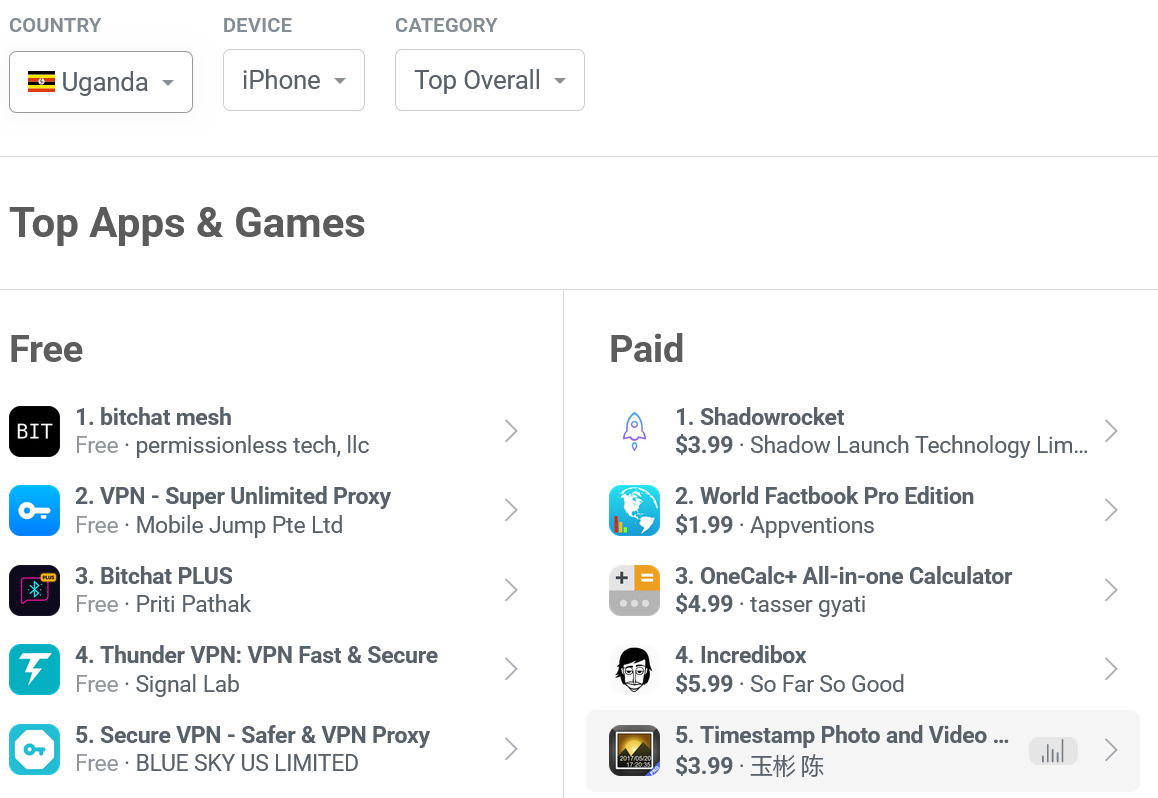 Bitchat’s ranking in the Apple App Store in Uganda