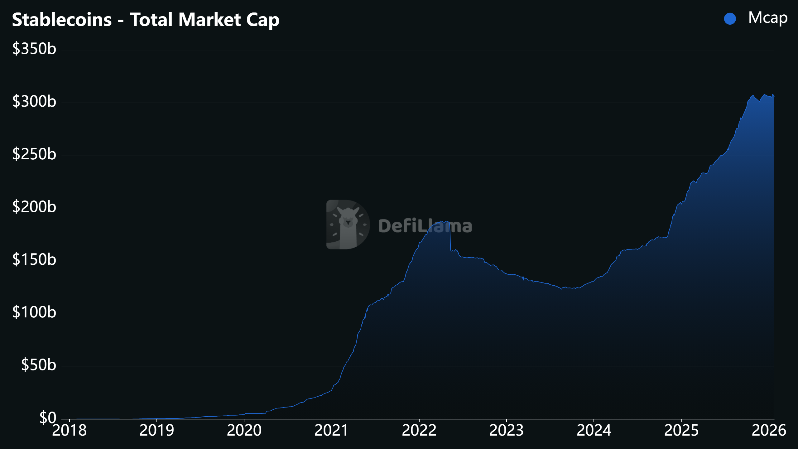 Stablecoins have an estimated market capitalization of over $300 billion. Source: DefiLlama