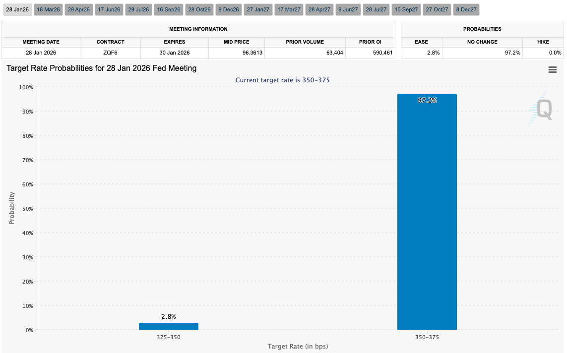 Fed target rate probabilities for Jan. 28 FOMC meeting (screenshot). Source: CME Group