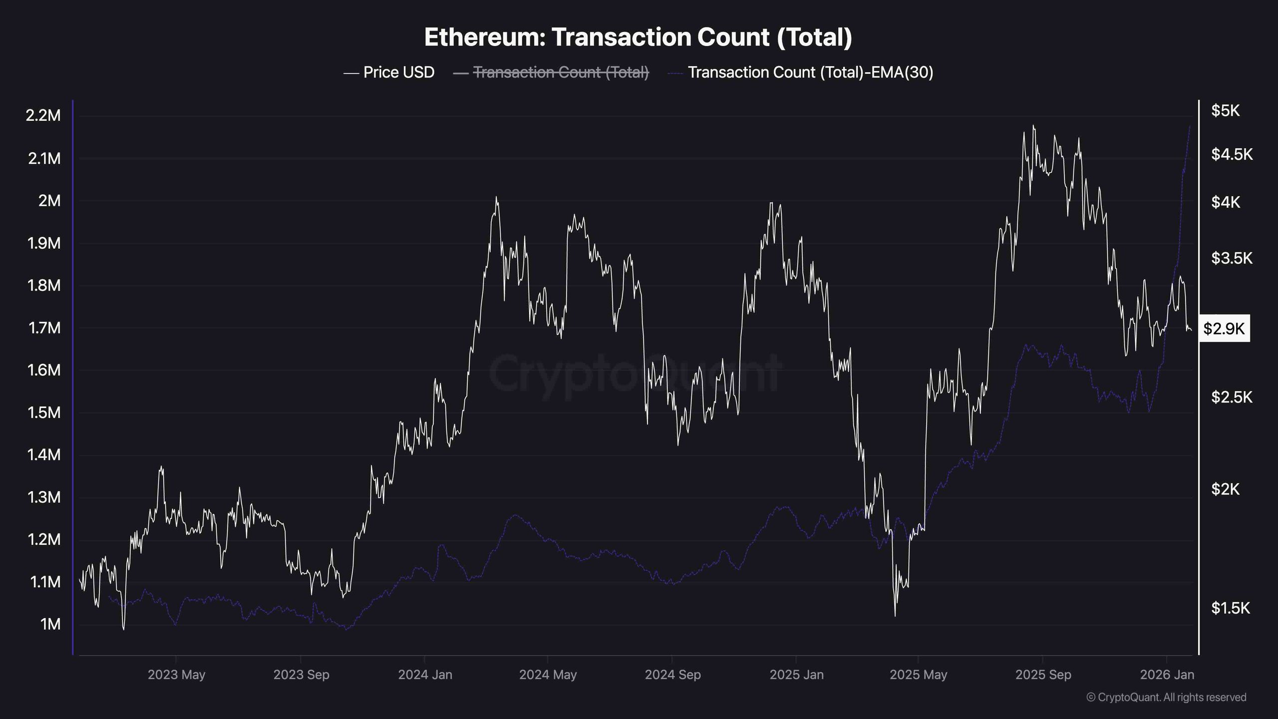 Analyzing on-chain metrics shows an uptick in Ethereum’s total transaction count and 30-day EMA, suggesting that even while prices fall back toward $2,900, there’s a shift from speculative activity towards genuine network usage as weaker investors exit, leaving engaged users behind. If transaction counts uphold or rise while prices stabilize above critical demand zones, this may hint at significant market health. Conversely, inactivity might signal a recovery driven more by technical aspects than fundamental strength.
