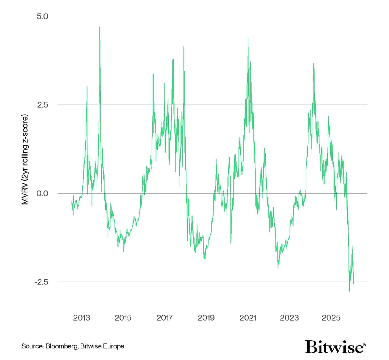 Bitcoin MVRV 2-year rolling z-score. Source: Bitwise