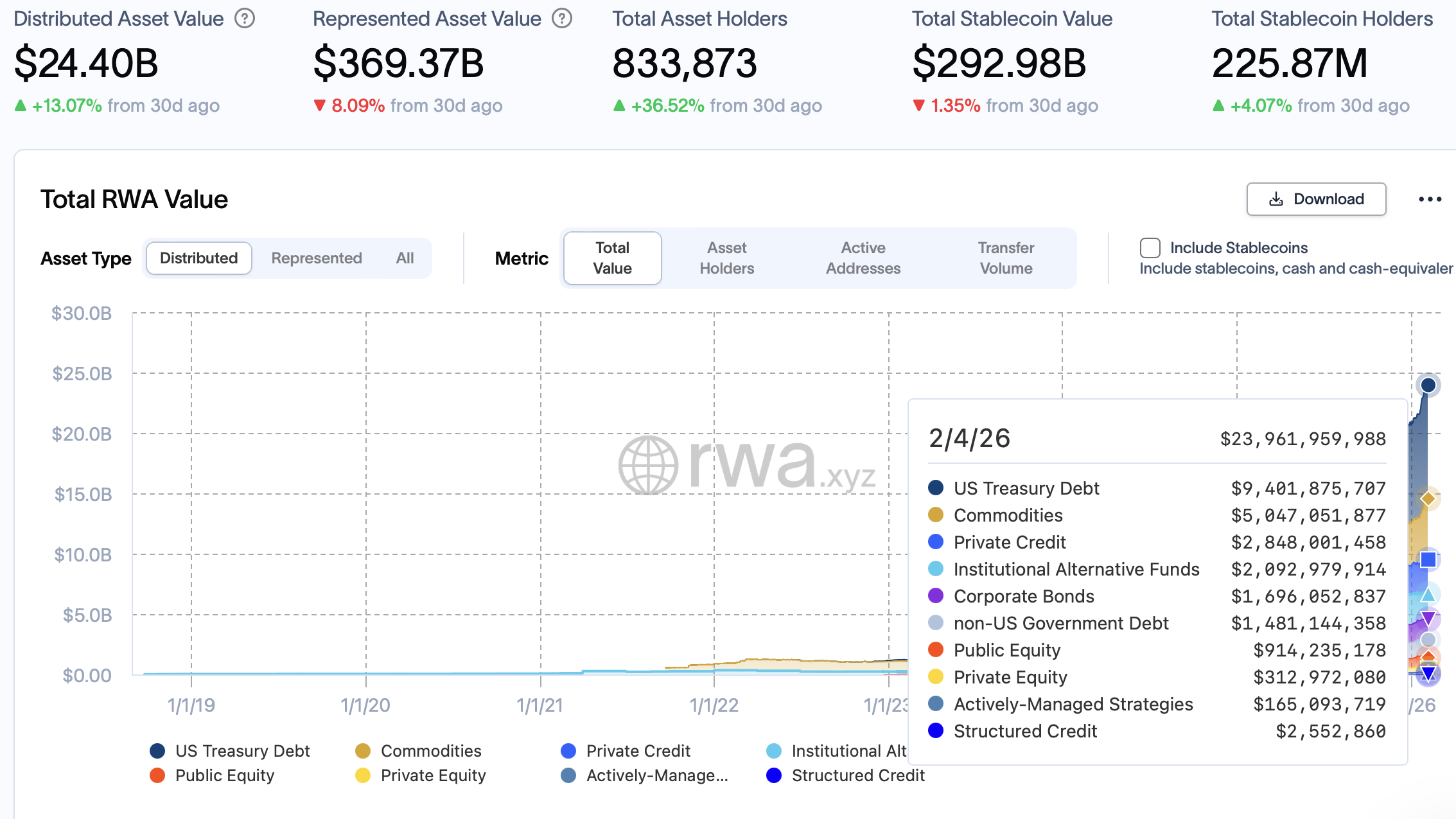 The value of global tokenized real-world assets. Source: RWA.xyz