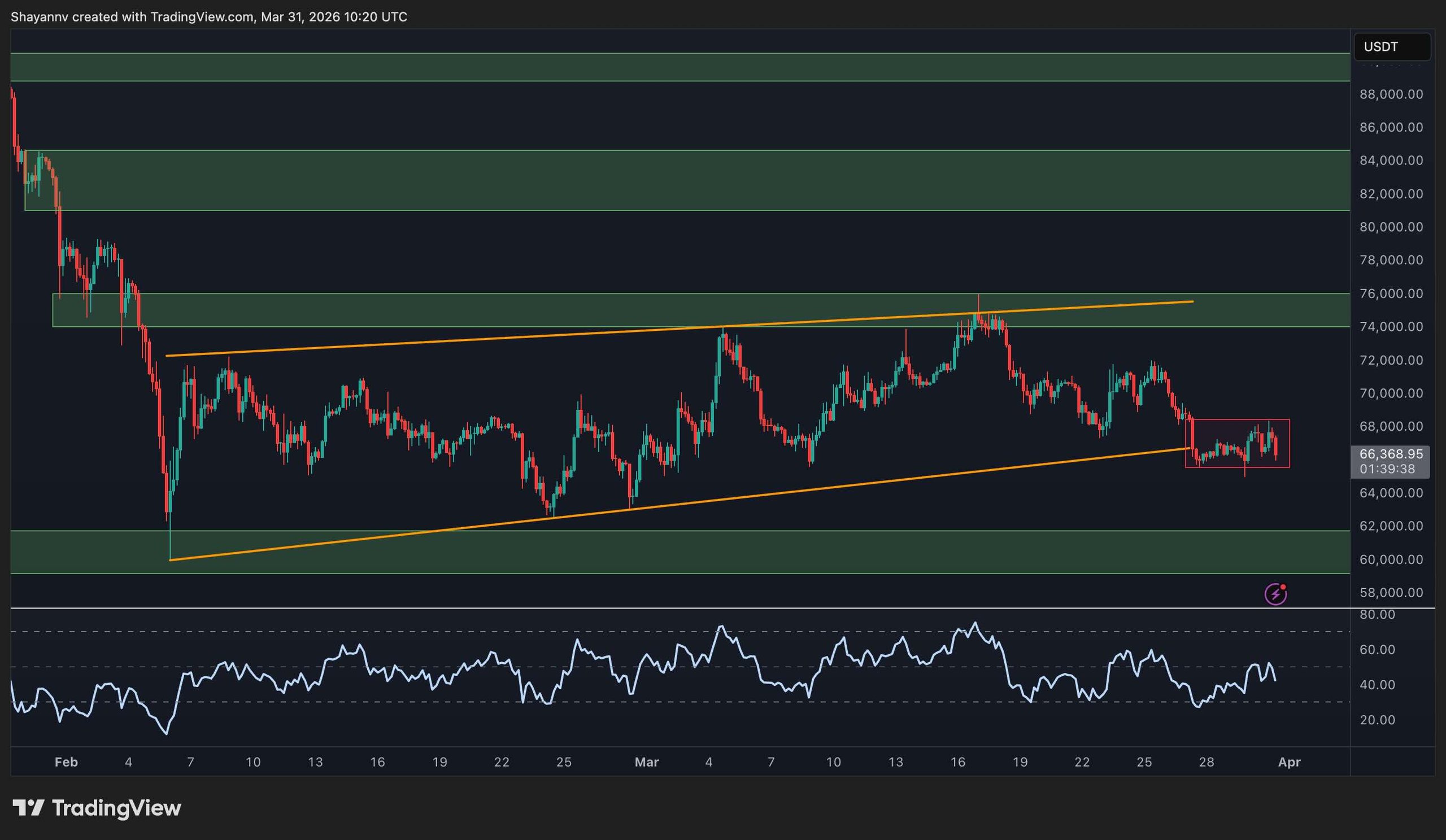 Bitcoin is closing out Q1 2026 on a sour note. The leading cryptocurrency is trading around $66.4k after losing nearly half its value from its October 2025 high, which was close to $125k. With ongoing macroeconomic and geopolitical uncertainties affecting risk assets, Bitcoin enters Q2 without a visible bullish catalyst.