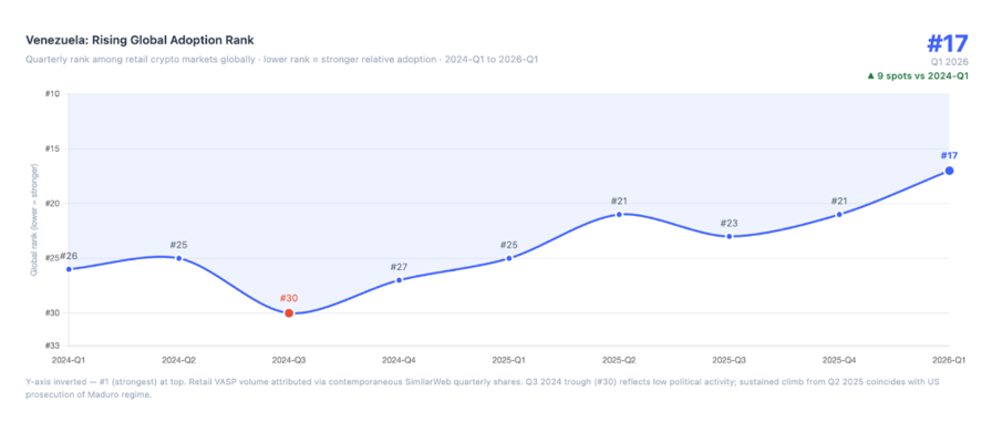 The study observed Venezuela as another notable market for increasing crypto adoption due to ongoing sanctions. Source: TRM Labs