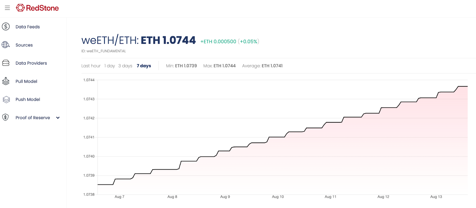 weETH / ETH price appreciation over time via liquid restaking yield accrual, Source: RedStone