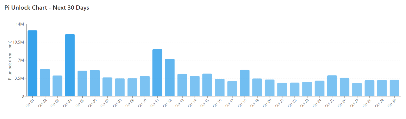 On October 1, nearly 13 million tokens are scheduled for unlocking, marking the highest amount for the next 30 days, with 136.3 million PI set to be released during this timeframe, allowing investors to liquidate their previously held assets.