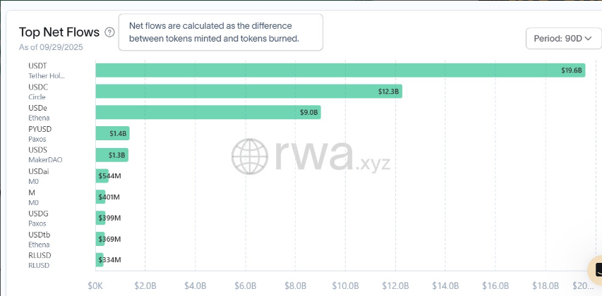 Stablecoin inflows over the last 90 days. Source: RWA.xyz