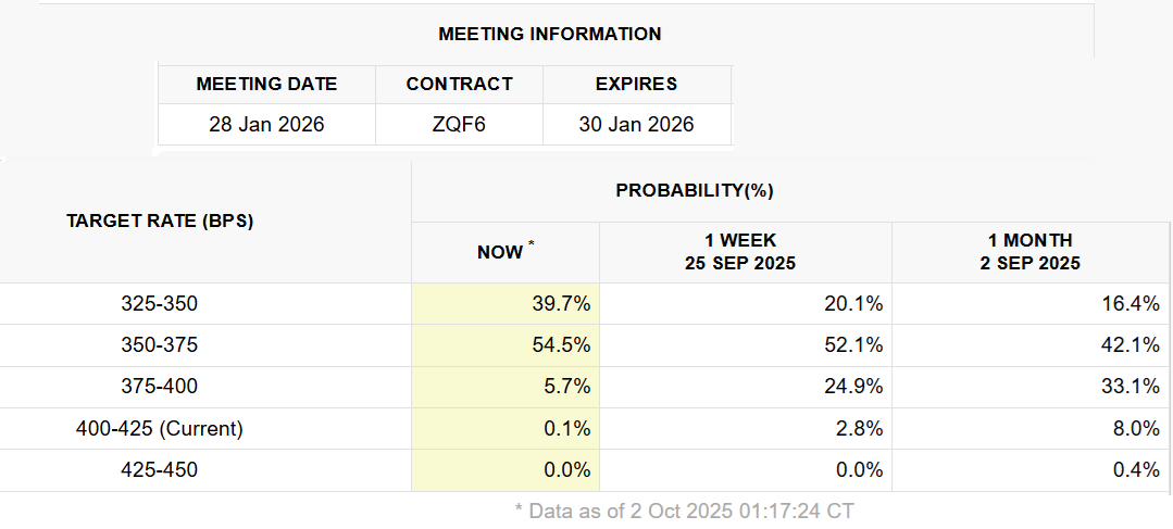 According to the CME FedWatch tool, the likelihood of the Federal Reserve reducing rates to 3.50% or less by January 2024 now stands at 40%, compared to 18% back in mid-August. Although the current inflation trends might be welcomed, persistent weaknesses in the labor market could put pressure on the recent S&P 500 peak amidst uncertainties related to possible US government shutdowns.