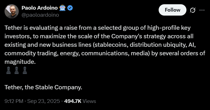 Tether’s head Paolo Ardoino shared that they are targeting a select audience of prestigious backers for this venture, although details remain closely guarded.