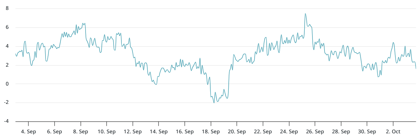 ETH 60-day futures annualized premium relative to spot markets. Source: laevitas.ch