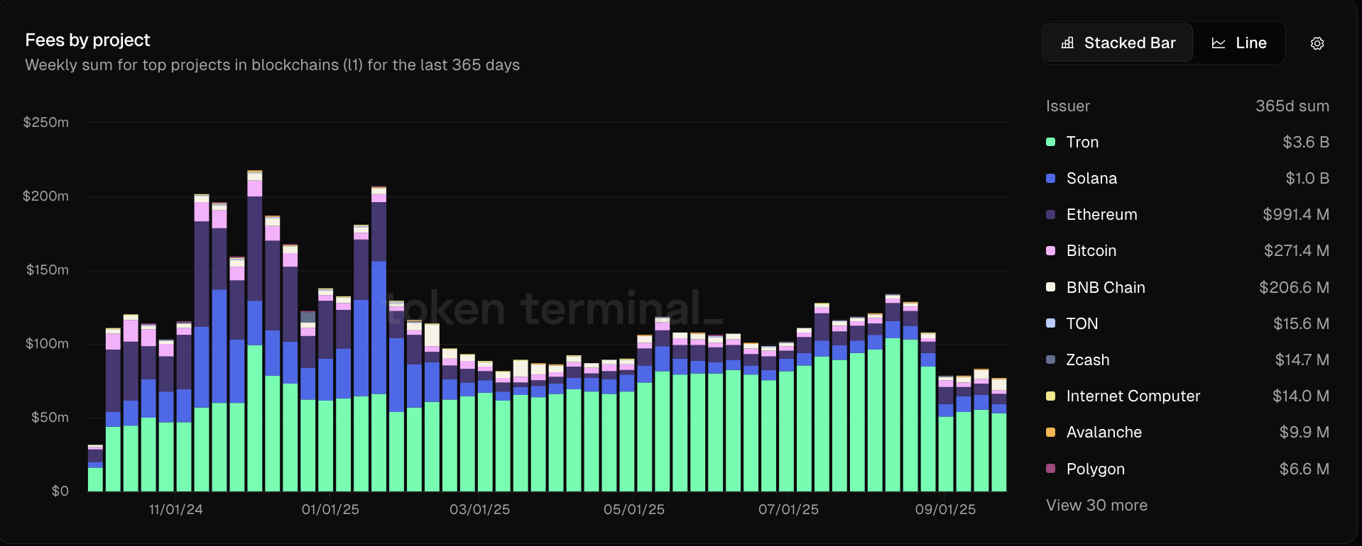 The Tron network currently leads in terms of revenue generation, boasting an impressive $3.6 billion in the past year, according to data from Token Terminal. Comparatively, Ethereum only garnered $1 billion during the same timeframe, even with ETH reaching all-time highs in August alongside a market cap nearing $539 billion.