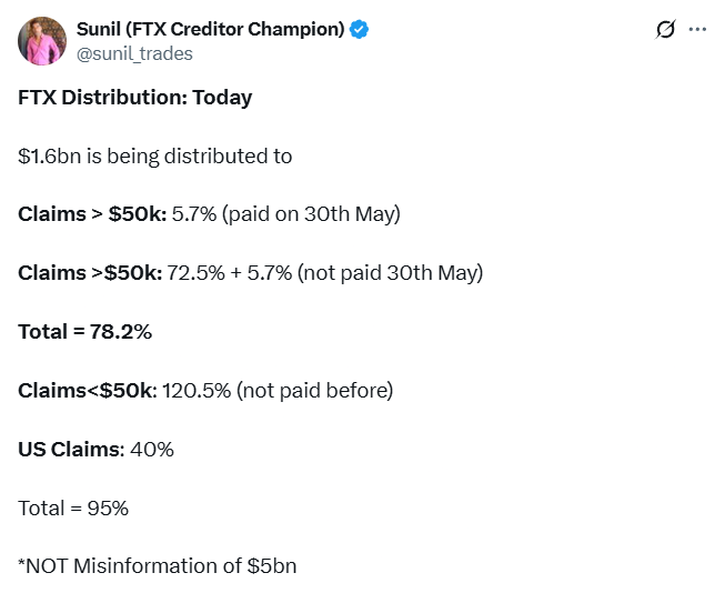 On September 30, FTX executed its third round of repayments amounting to $1.6 billion to its users, as reported by Sunil, a creditor and member of the Customer Ad-Hoc Committee, through a post on X.
