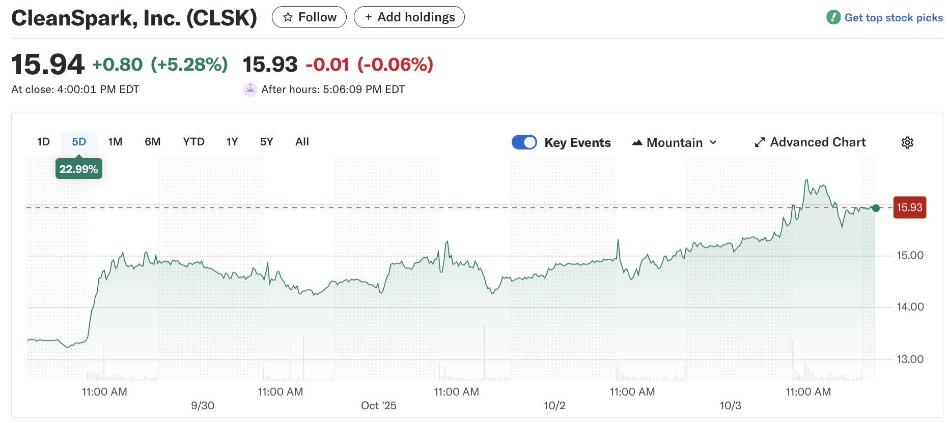 CleanSpark, a publicly traded Bitcoin miner, reported a 5% increase in share prices following a strong production report for September. The company ended the month with 13,011 BTC in its treasury, reflecting significant year-over-year improvements in both efficiency and production.