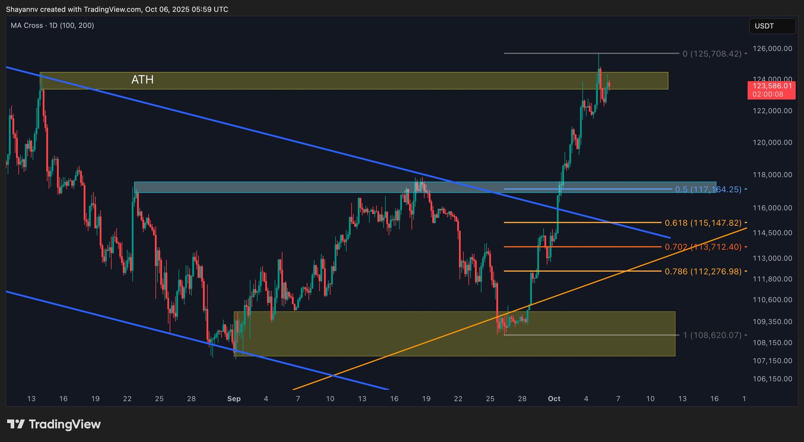 On the daily chart, XRP is operating within a converging wedge, characterized by a descending resistance line originating from the yearly peak and a rising support trendline. The price has reclaimed the 100-day and 200-day moving averages and has gone through a pullback, indicating improving bullish sentiment following a prolonged period of sideways trading.