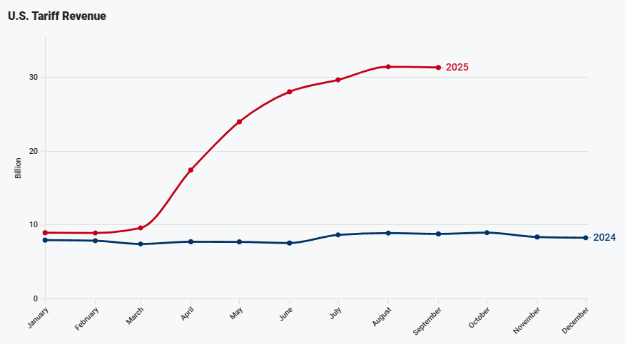 US tariff revenue. Source: Department of the Treasury, Fox Business