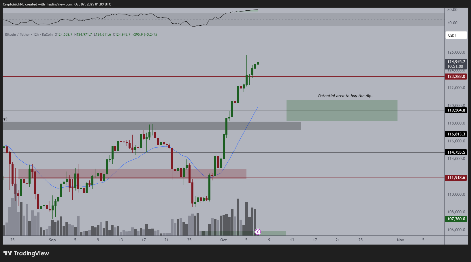 “Overall, dips are for buying, and the next resistance is near $135,000.”