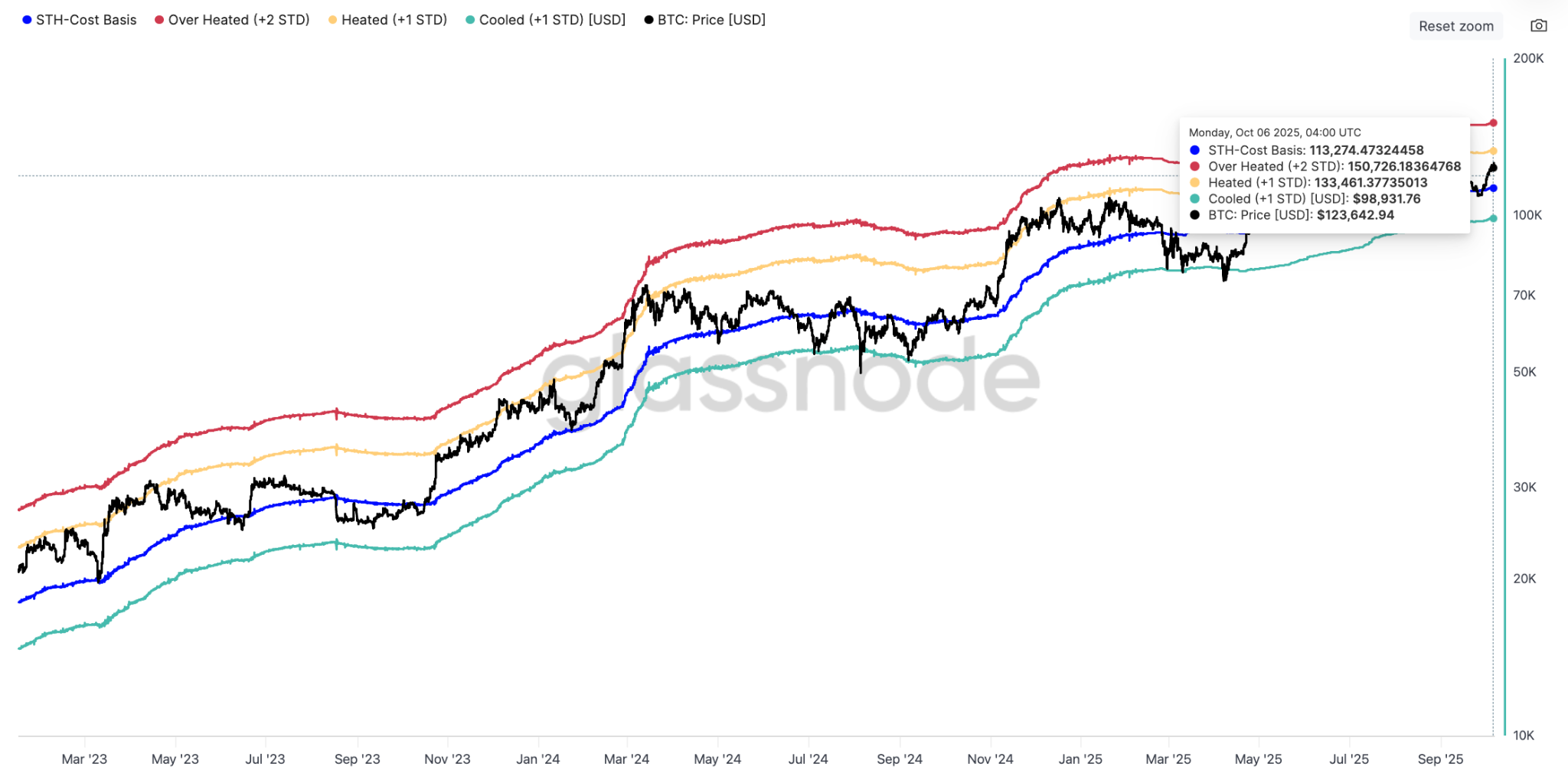 Bitcoin short-term cost basis bands. Source: Glassnode
