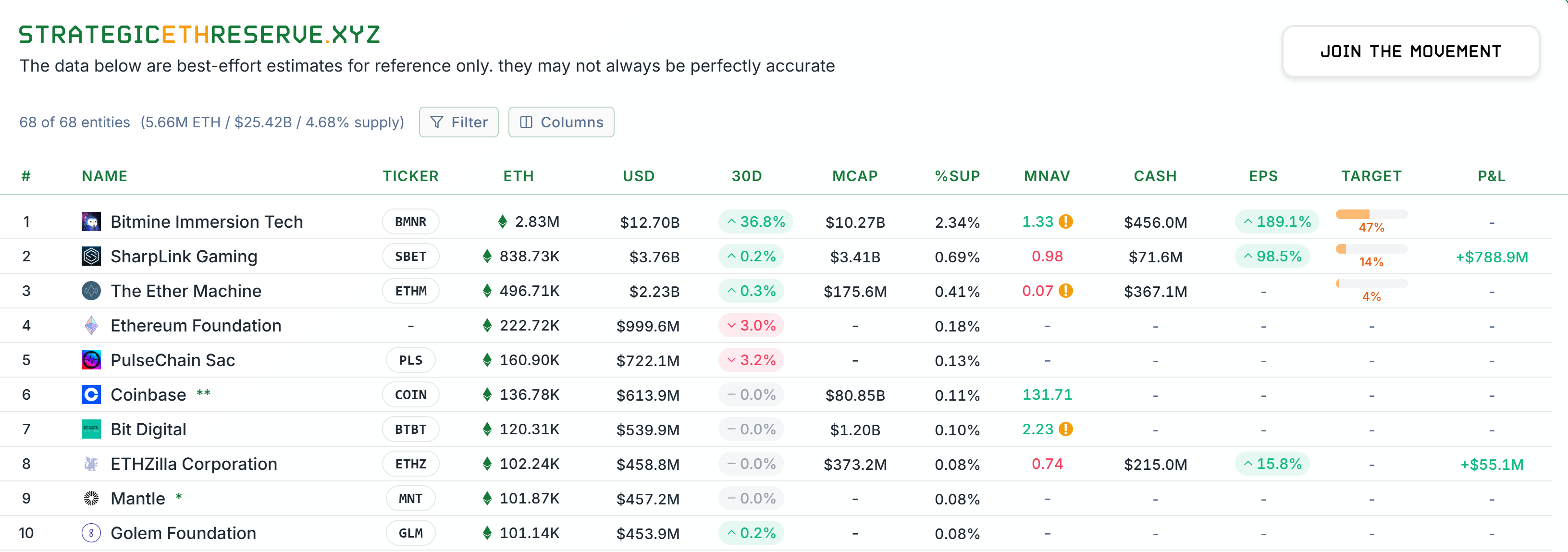 Top 10 ETH treasury companies. Source: Strategicethreserve.xyz