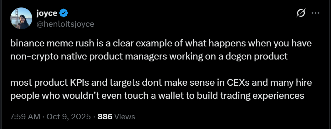 While many of the impacted memecoins had market caps below $50 million, notable exceptions, such as PALU, GIGGLE, and Binance Life (币安人生) emerged as significant players during this decline. Analysts suggest that sentiments shifted following Binance’s announcement of the Meme Rush platform, a collaboration with Four.Meme available solely to Binance Wallet users.