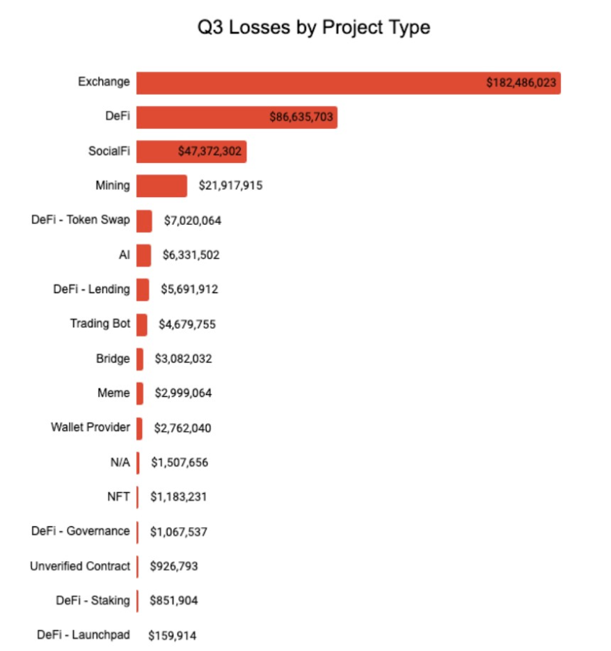 As of the third quarter of 2025, crypto exchanges and DeFi protocols are the most exploited sectors. Source: CertiK
