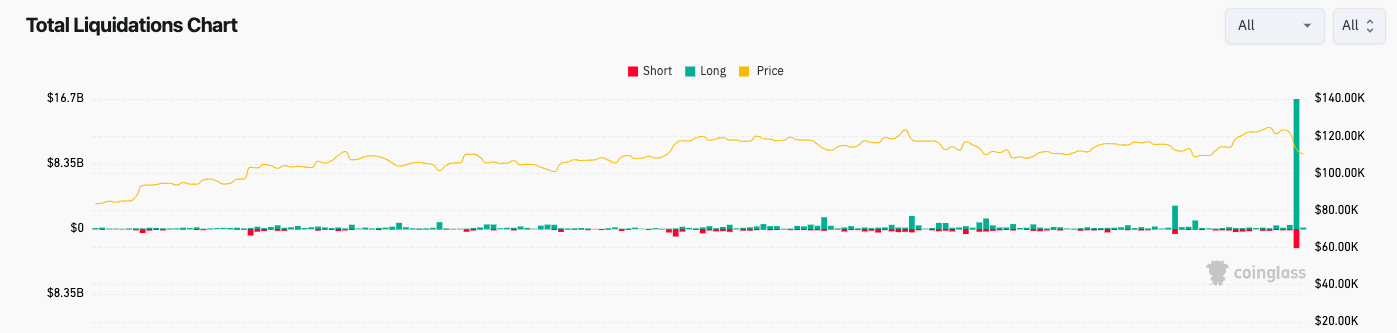Bitcoin (BTC) tested the $110,000 support level on Saturday following the aftermath of the record-setting liquidation.