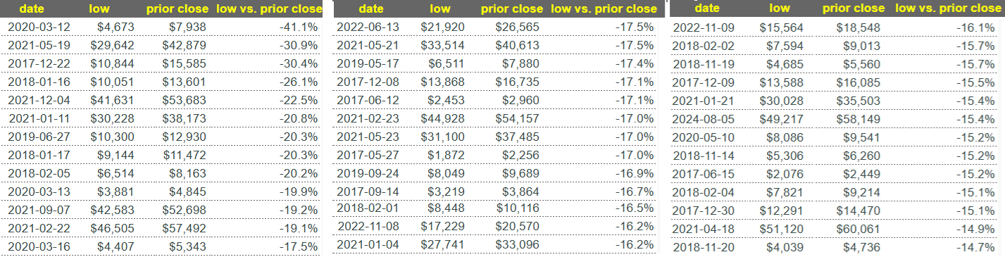 Largest Bitcoin intraday crashes since May 2017. Source: TradingView / Cointelegraph