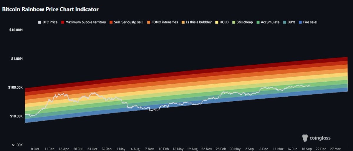 Daan Crypto Trades remarked that his “base case for this cycle has always been $120K-$150K.” Analysts are watching closely as Bitcoin nears the light green/yellowish section of the rainbow price chart indicator, believing it could be a prime moment to start exiting positions as prices approach these thresholds.