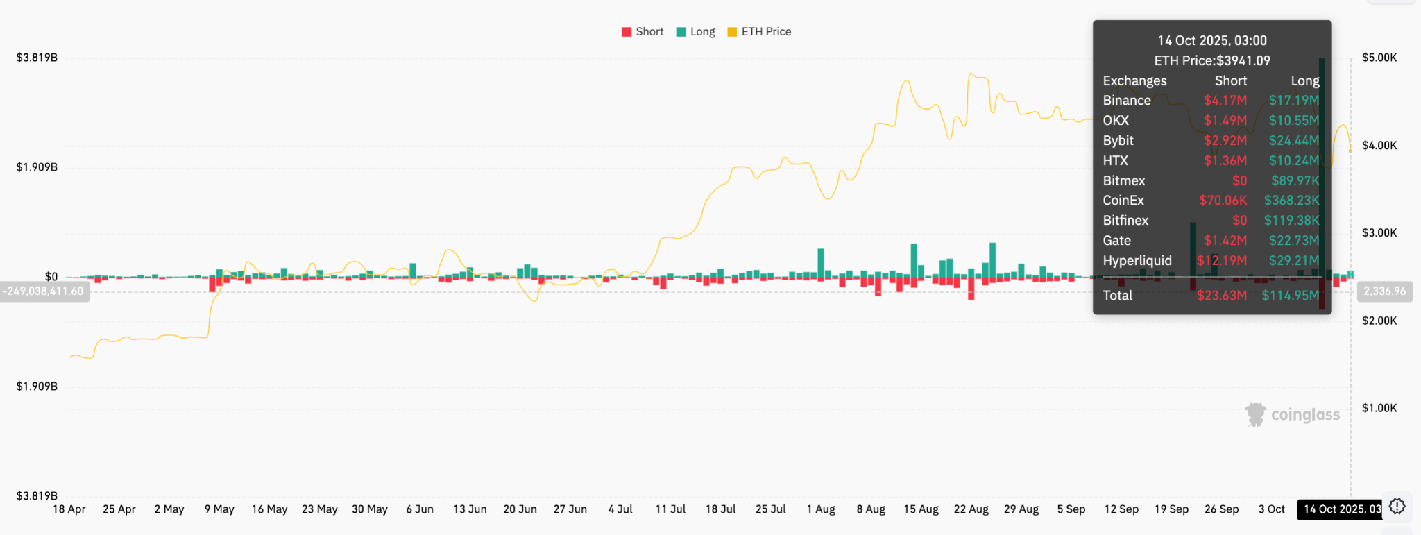 Ethereum’s price has recently decreased by 8%, touching the $3,940 level. Although this dip caused a liquidation of $115 million in long positions, traders are optimistic about a potential breakout toward all-time highs with a target of $10,000.