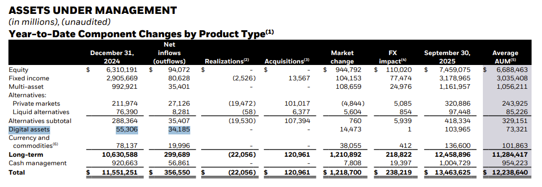 Fink emphasized that BlackRock is “always preparing for the future,” focusing on emerging sectors like technology and digital assets. During this quarter, net inflows into BlackRock’s digital asset ETFs reached $17 billion, bringing the total up to $34 billion for the year. By September, total crypto assets managed by the firm approached $104 billion, accounting for about 1% of its total assets.