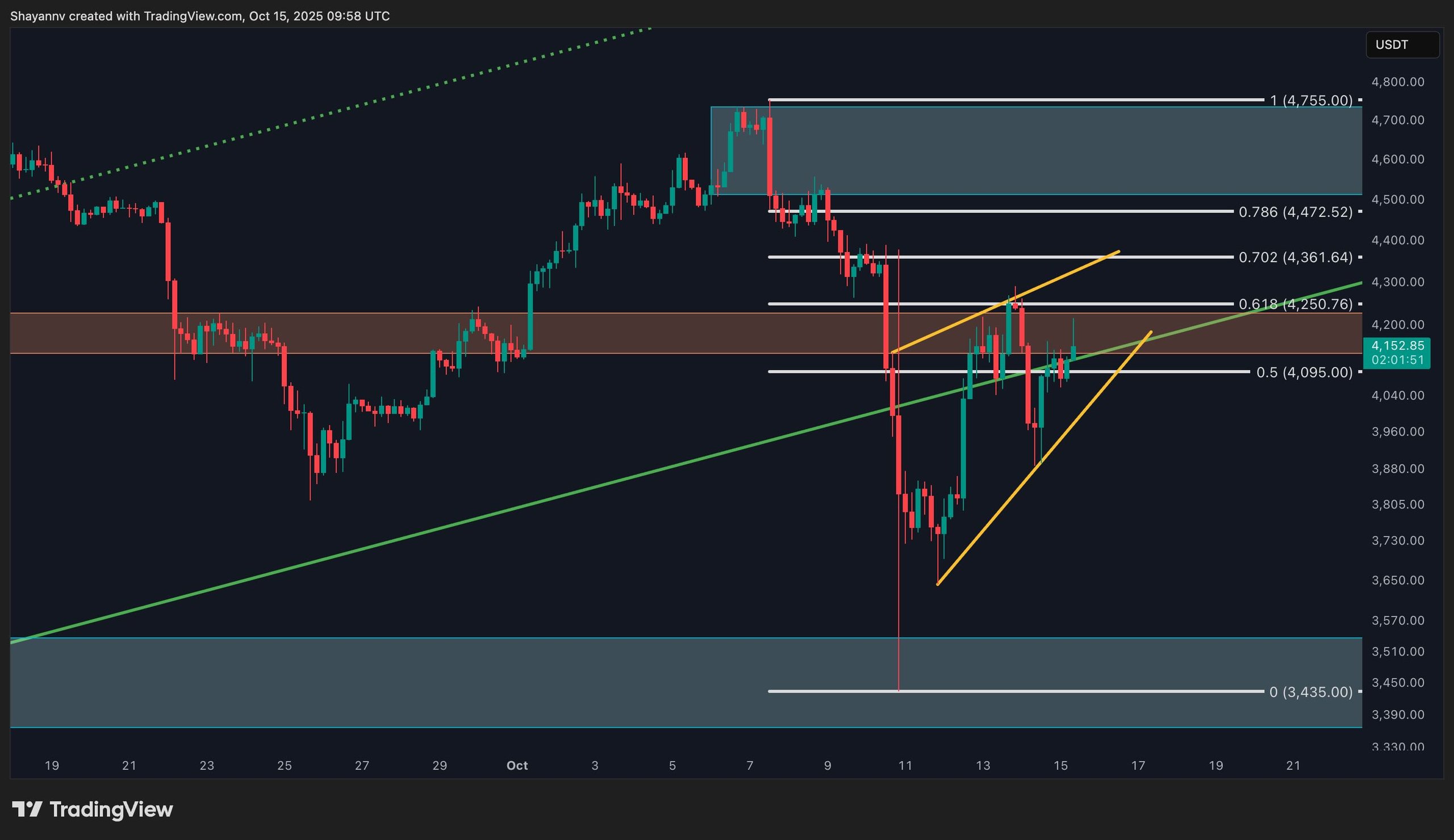 A breakout above $4,300 would negate the wedge pattern and confirm a bullish trajectory toward $4,450 - $4,700. Conversely, falling below the wedge could reignite weakness, driving Ethereum back towards the demand region of $3,800 - $3,400. While momentum appears constructive, the decreasing volatility within the wedge suggests a significant directional movement may be approaching.