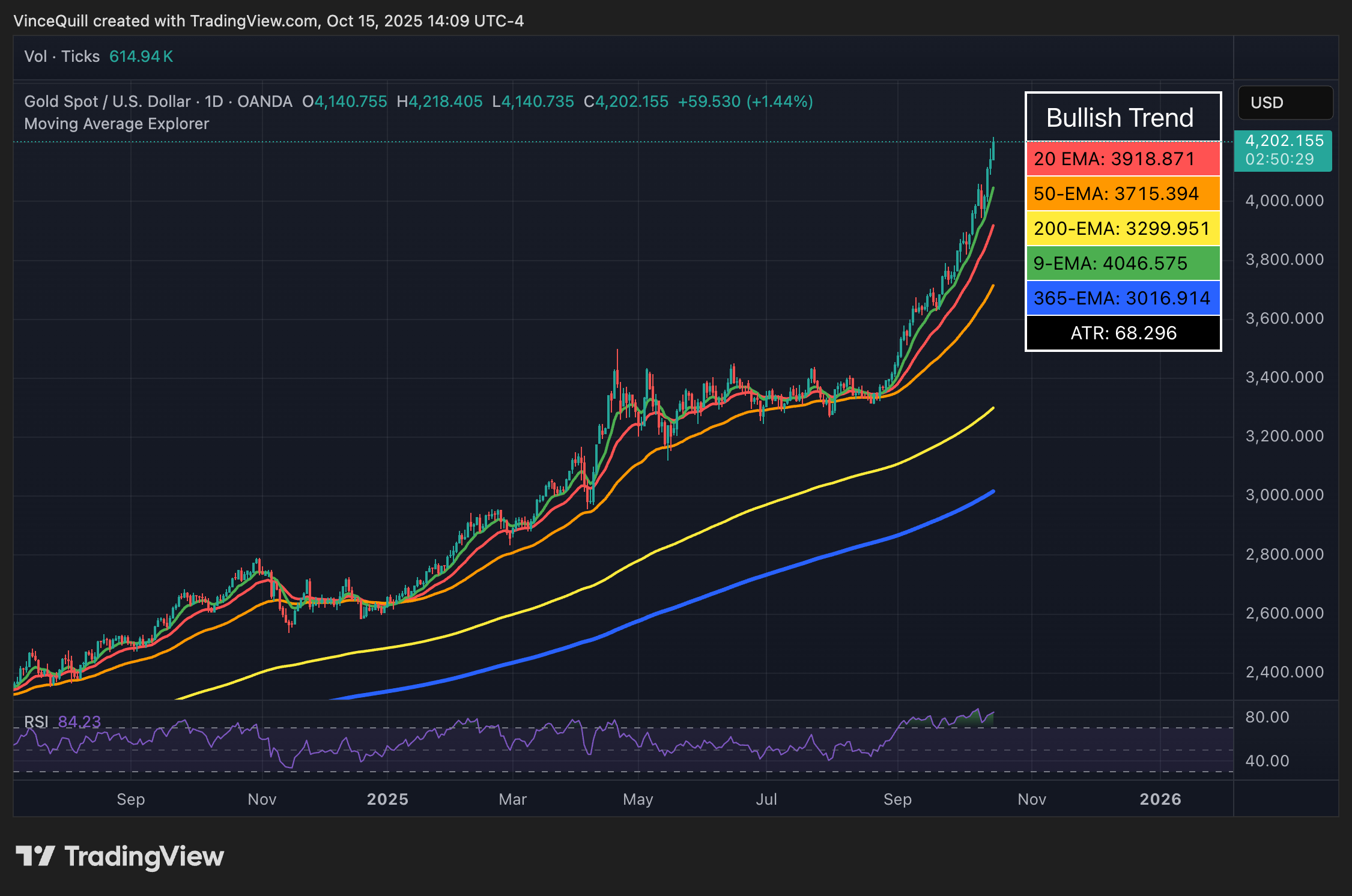 The price of gold hits a new all-time high of over $4,200 per ounce. Source: TradingView