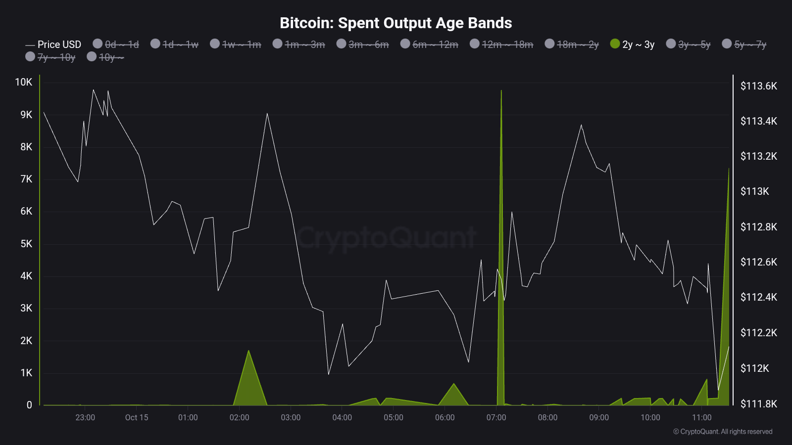 Nevertheless, moving older coins has raised short-term market complexity. Around 7,343 BTC, aged two to three years, were reactivated this week, suggesting some long-term holders might be taking profits or shifting strategies.