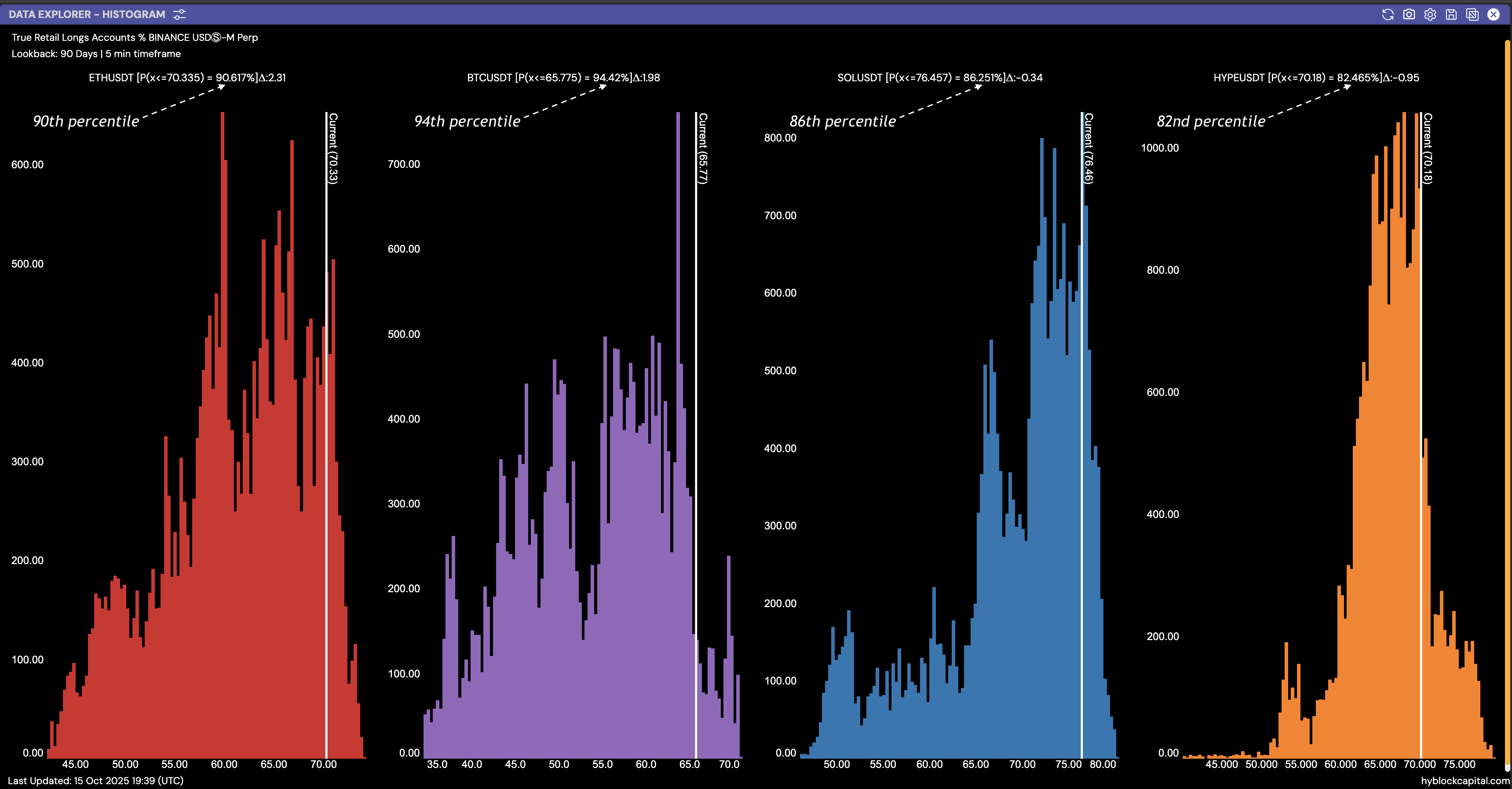 True retail long % on Binance for BTC, ETH, SOL, and HYPE. Source: Hyblock Capital/X