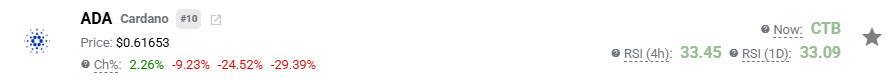 As of now, ADA’s price is approximately $0.62, reflecting a 24% decrease over the past week, and its market cap has dropped to around $22.5 billion, now positioning it as the 11th largest cryptocurrency. However, ADA’s Relative Strength Index (RSI) suggests that a recovery might be imminent. The RSI is a technical analysis indicator that gauges the speed and magnitude of price movements to determine if a token is overbought or oversold, with readings around 30 indicating potential undervaluation.