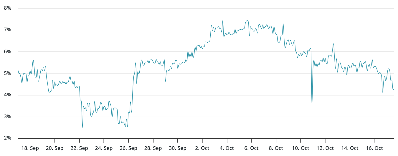 The ETH monthly futures premium relative to spot markets dipped to 4%, falling below the 5% neutral threshold. Trader sentiment had already been shaken following the recent flash crash on Oct. 10, and the last notable bullish surge occurred in early February. Increasingly, Ether traders appear skeptical regarding the durability of any bullish traction.