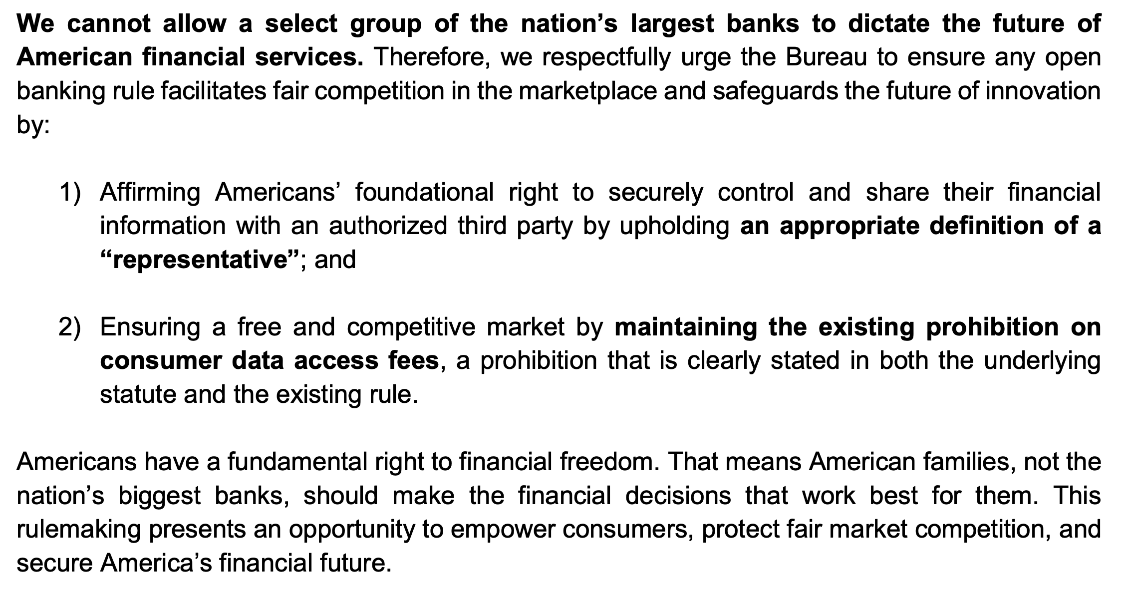 Tomorrow marks the final day to submit a comment letter to the CFPB surrounding the prospective open banking rule.