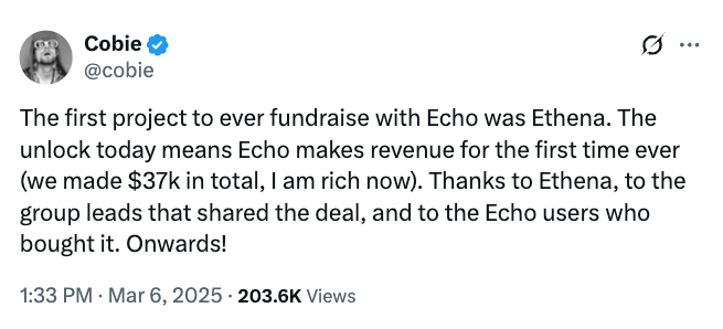 Echo’s first fundraising success was with Ethena, a synthetic dollar protocol that has gained traction in the stablecoin market.