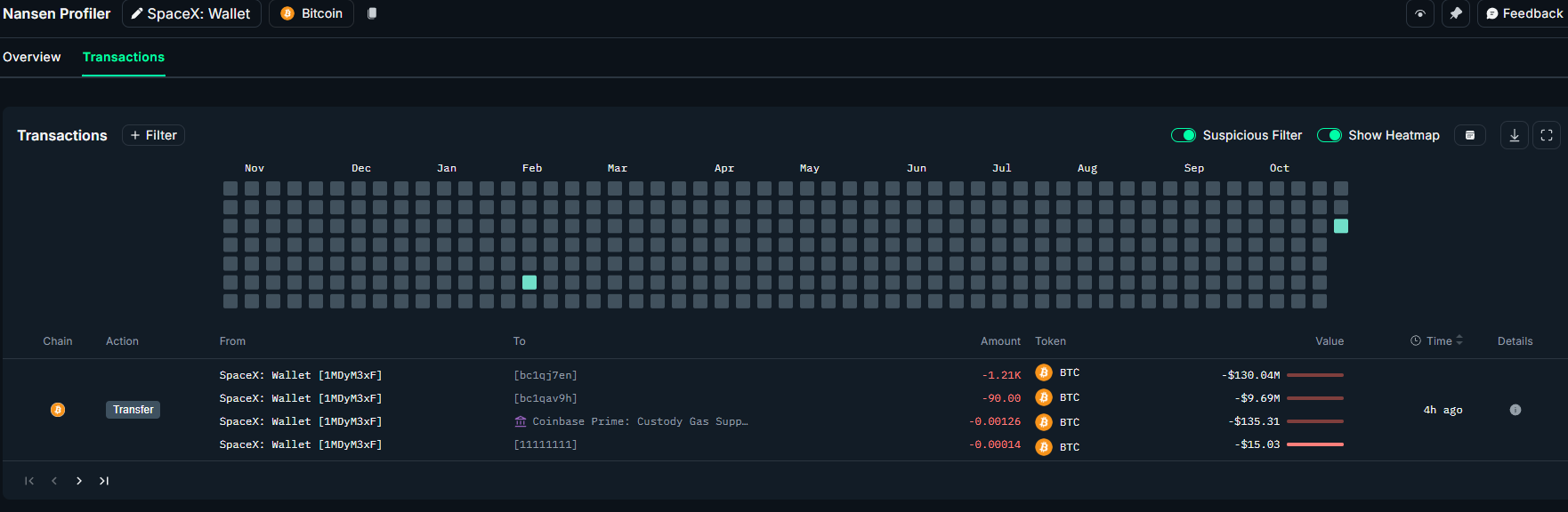 SpaceX wallet “1MDyM,” transfers. Source: Nansen.ai